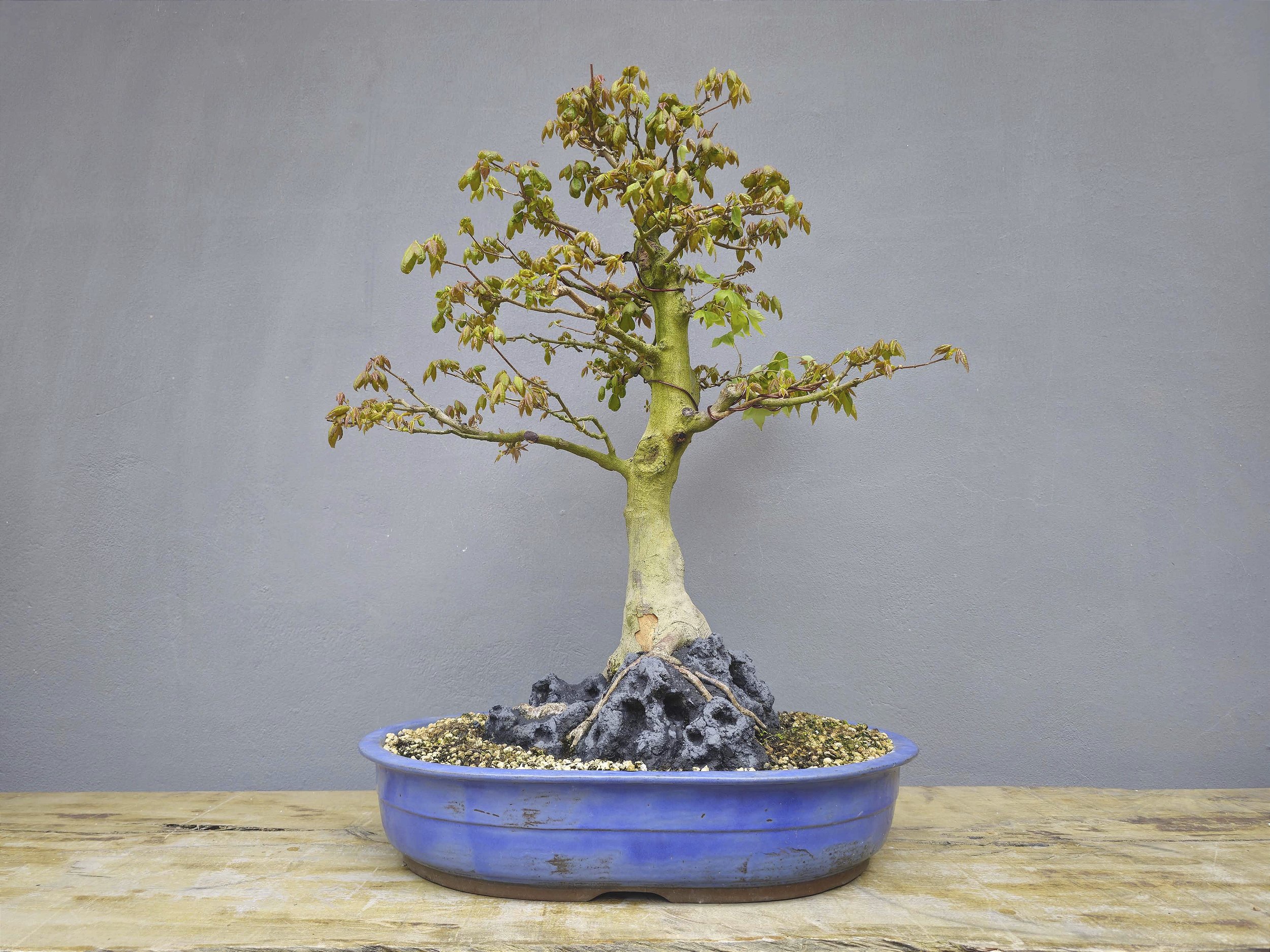 O Acer Tridente é umas das espécies mais fáceis de cultivo na família dos Acer, com uma textura de tronco acinzentado, folhas que podem ser facilmente diminuídas e ramificações curtas e finas que são é ideal para representar maturidade e elegância aos olhos do espectador.
