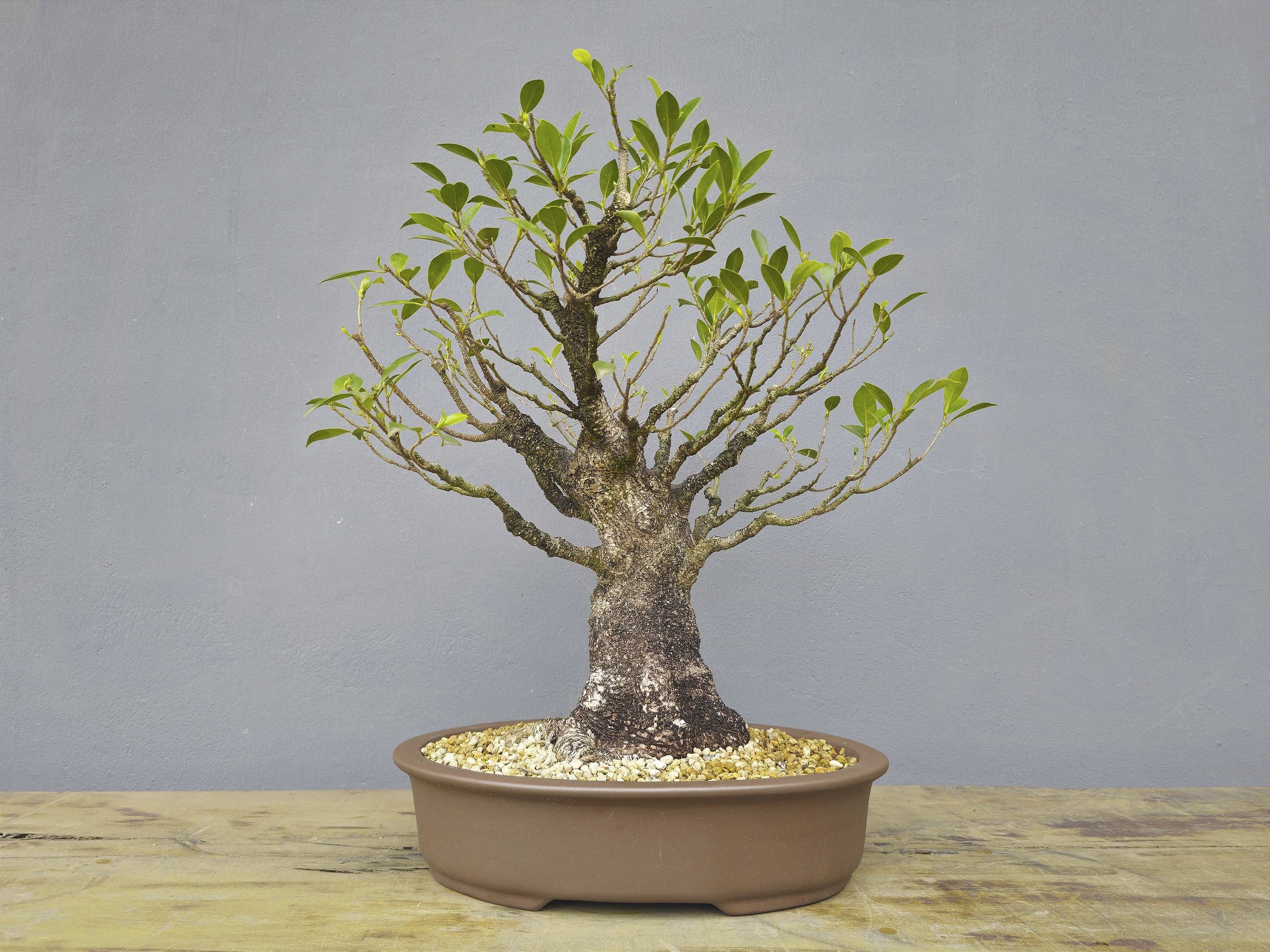 Fícus Microcarpa: Com as melhores características de sua família, o Fícus Microcarpa é a espécie favorita pelos artistas, folhas pequenas, entre-no curtos, tronco acinzentado, flores em forma de pequenos figos, raízes aéreas e de fácil criação de Nebari, o tornam uma arvore capaz de representar maturidade e elegância aos olhos do expectador.