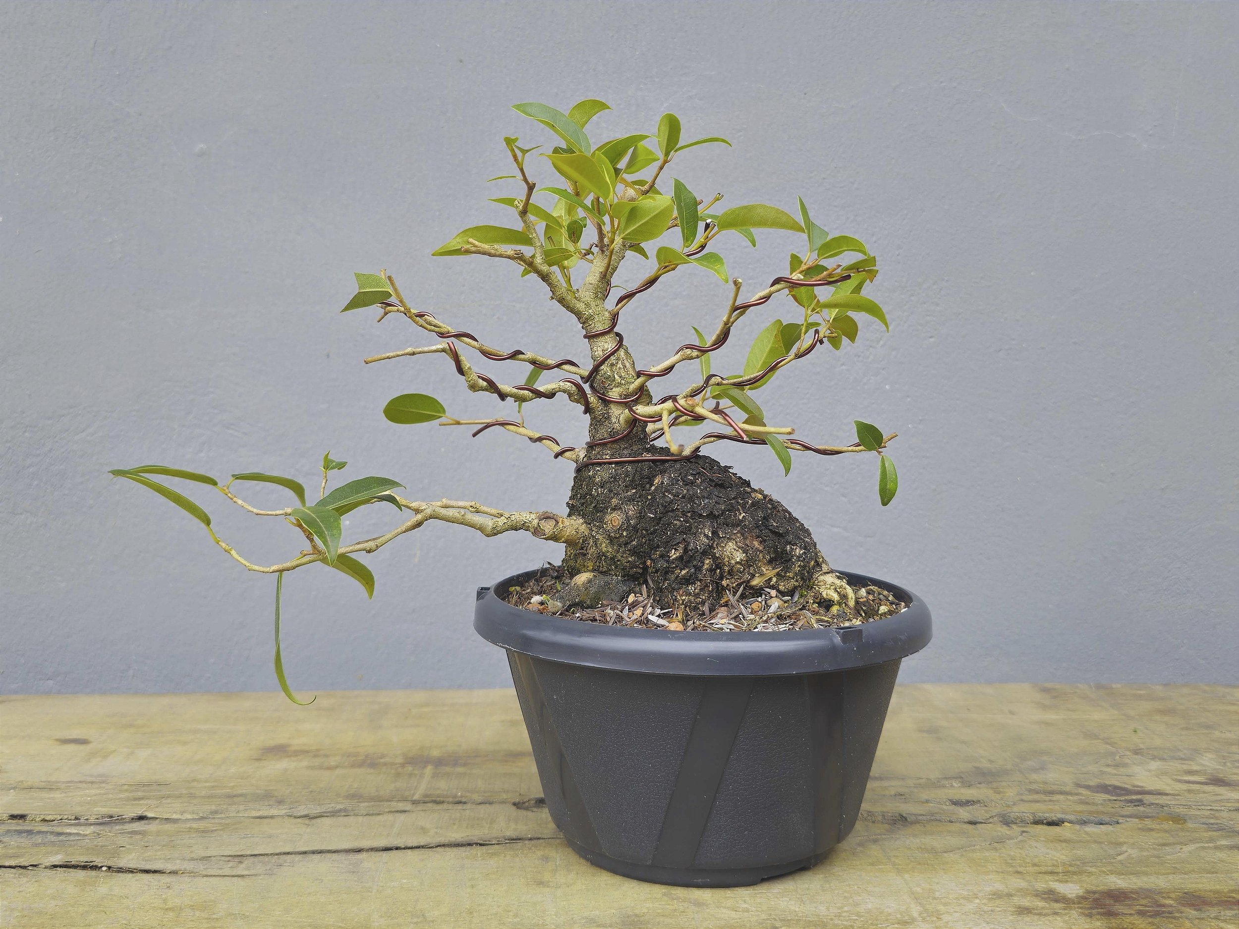 Fícus Microcarpa: Com as melhores características de sua família, o Fícus Microcarpa é a espécie favorita pelos artistas, folhas pequenas, entre-no curtos, tronco acinzentado, flores em forma de pequenos figos, raízes aéreas e de fácil criação de Nebari, o tornam uma arvore capaz de representar maturidade e elegância aos olhos do expectador.