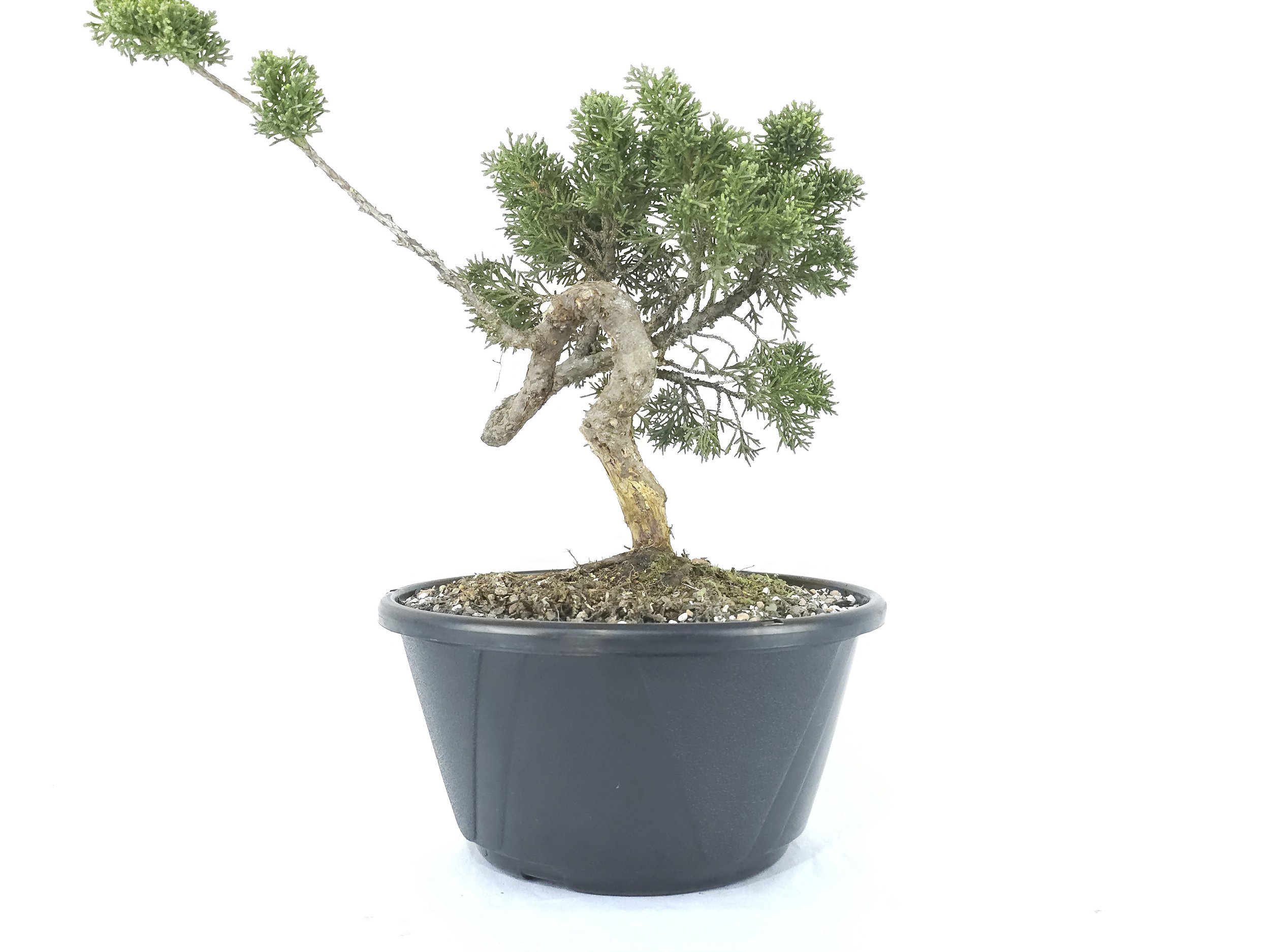 Shimpaku: Planta tradicional na arte do bonsai, ganhou espaço por aceitar as mais variadas técnicas aplicáveis na arte, como Jin, Share, Veios retorcidos e copa compacta, podendo representar os sinais mais evidentes de envelhecimento das arvores antigas.